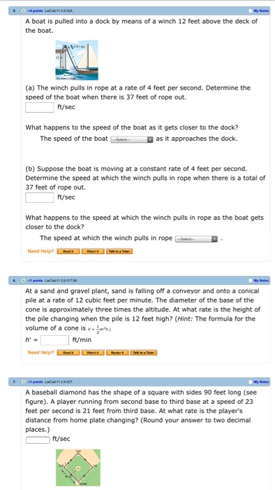 Boating A Boat Is Pulled Into A Dock By Means Of A Winch 12 Feet Above The Deck Of The Boat See Figure A The Winch Pulls In Rope At A Rate